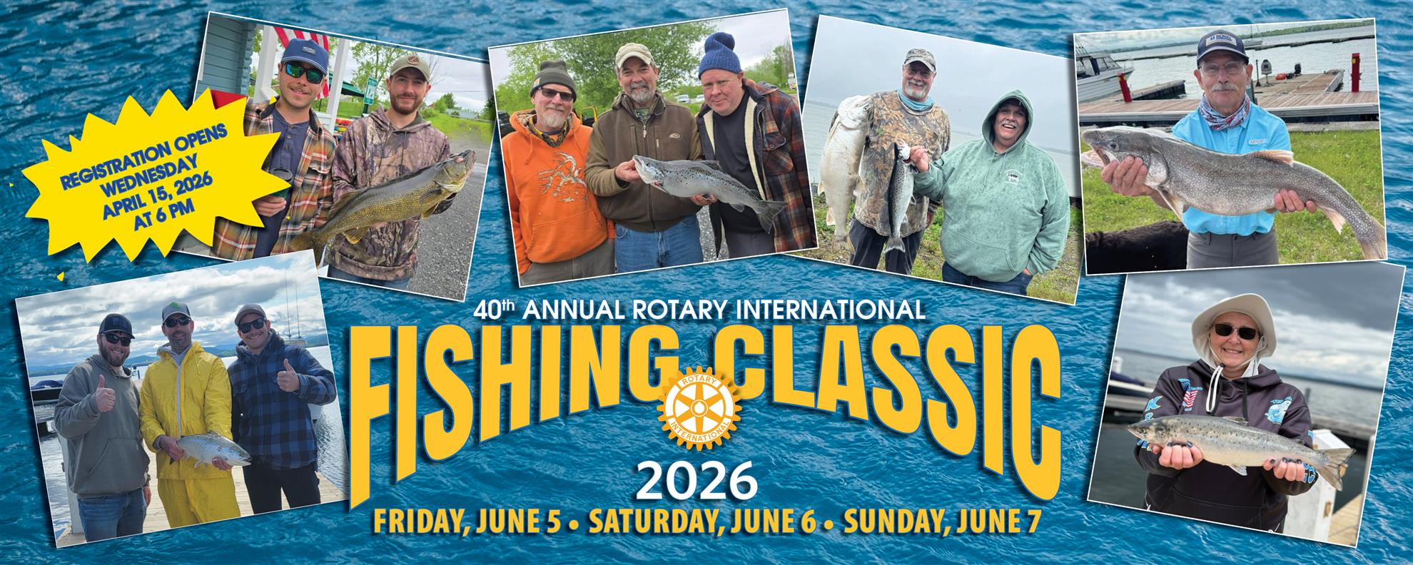 38th Annual Fishing ClassicRotary Club of Plattsburgh to hold 38th Annual Fishing Classic May 31 - June 2, 2024 PLATTSBURGH, NY __ The 38th annual Rotary International Fishing Classic will be held on beautiful Lake Champlain Friday, May 31 through Noon on Sunday June 2, 2024. This is the oldest fishing event on the lake, the earliest each year and features all cash individual and team prizes. The On-Line Registration Process opens Tuesday, April 16, 2024 at 6:00 a.m. for all individual and team competitions. Register online at https://bit.ly/Plattsburghrotaryfishingclassic or by phone at 1-866-947-3383. |