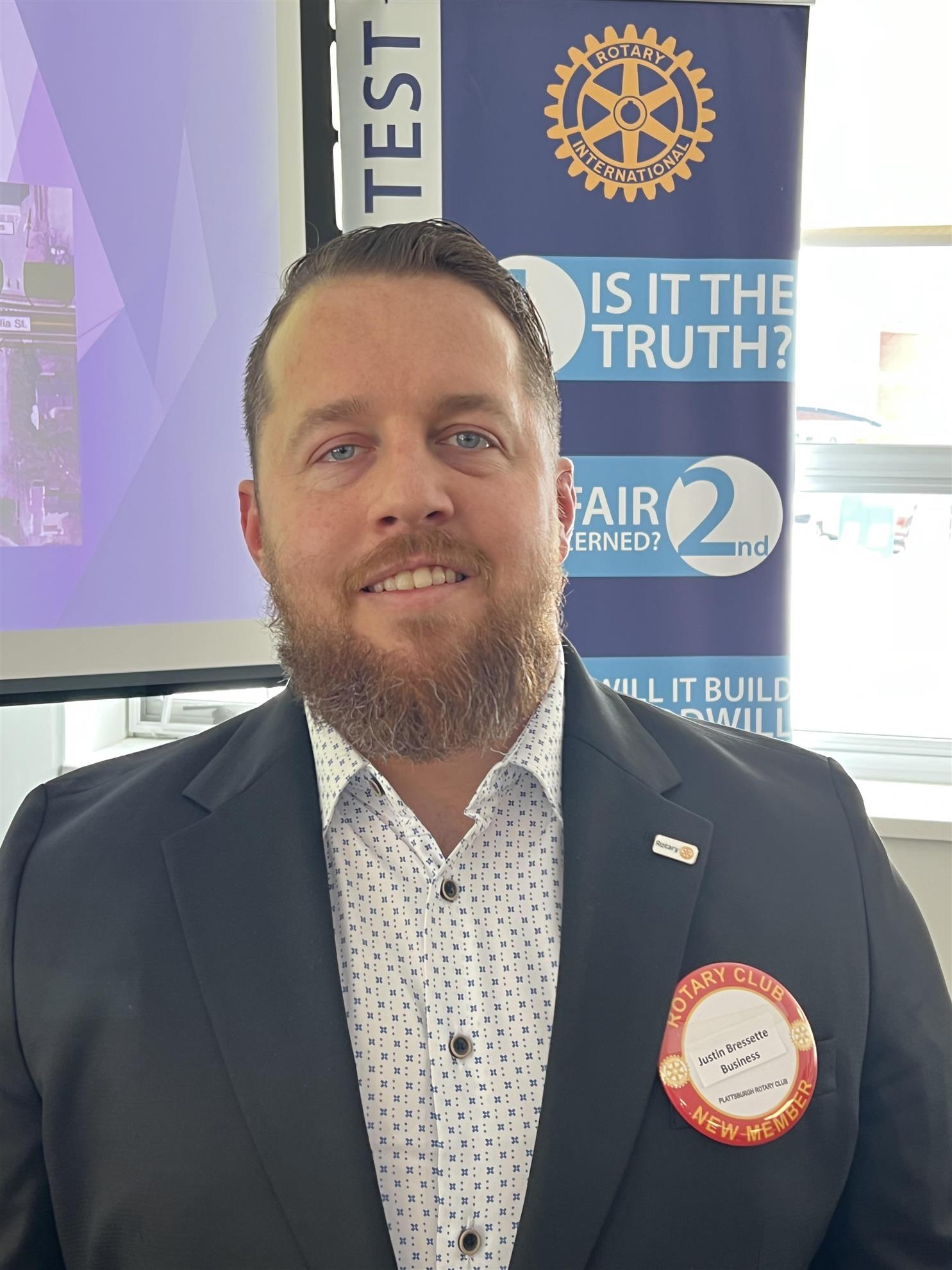 Justin Bresette was inducted into the Rotary club at the Feb. 18th meeting. |